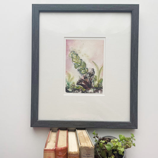 "Wonderarium" is inspired by my own Arium Terrarium, as well as references sent to me by Arium after I shared some of my artwork on social media. These artworks zoom in on the exquisite details and colourful of the miniature plant life encapsulated in their glass homes. I was just delighted by all the detail in the terrariums and these paintings captured that fascination on paper.